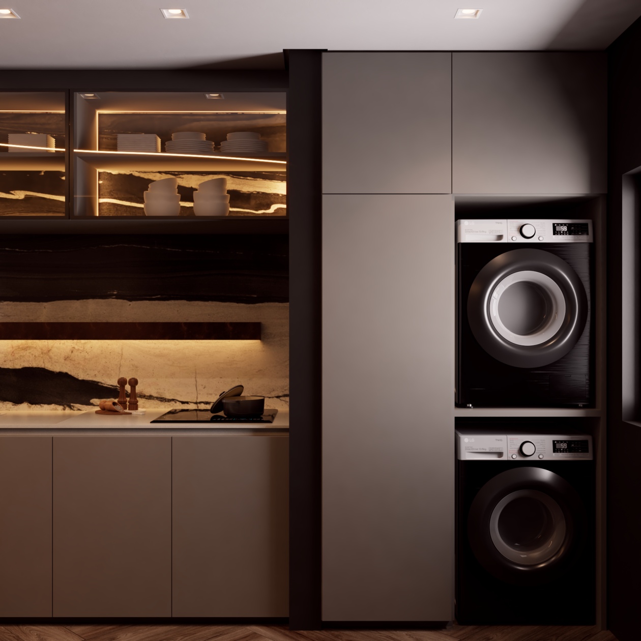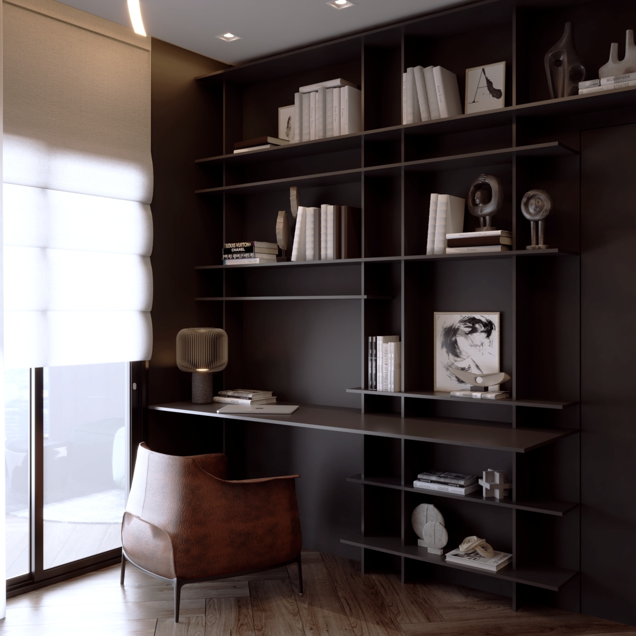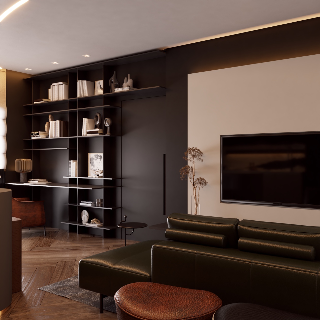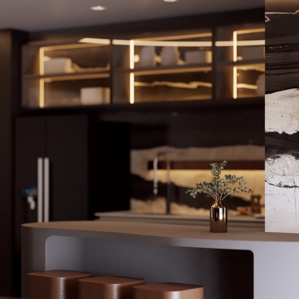 Este apartamento contemporâneo, onde o cobre é a estrela central, conferindo uma aura de sofisticação e modernidade. A paleta é enriquecida com tons amadeirados, presentes em pisos, móveis e