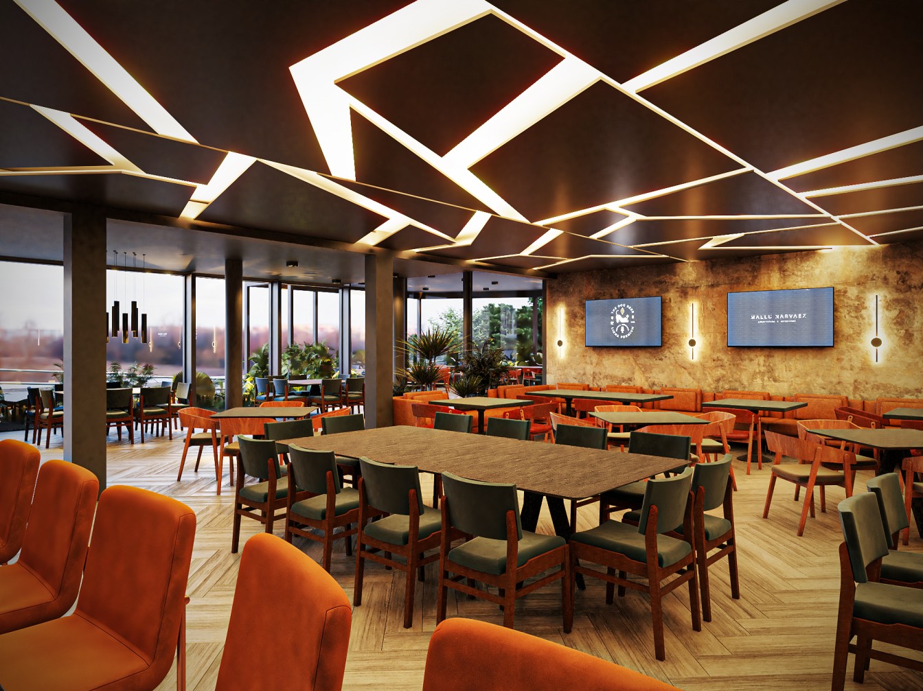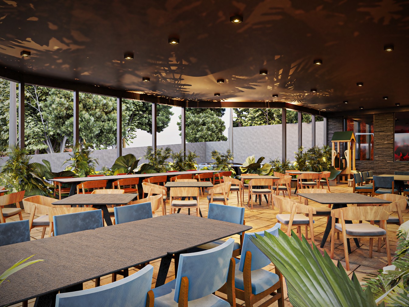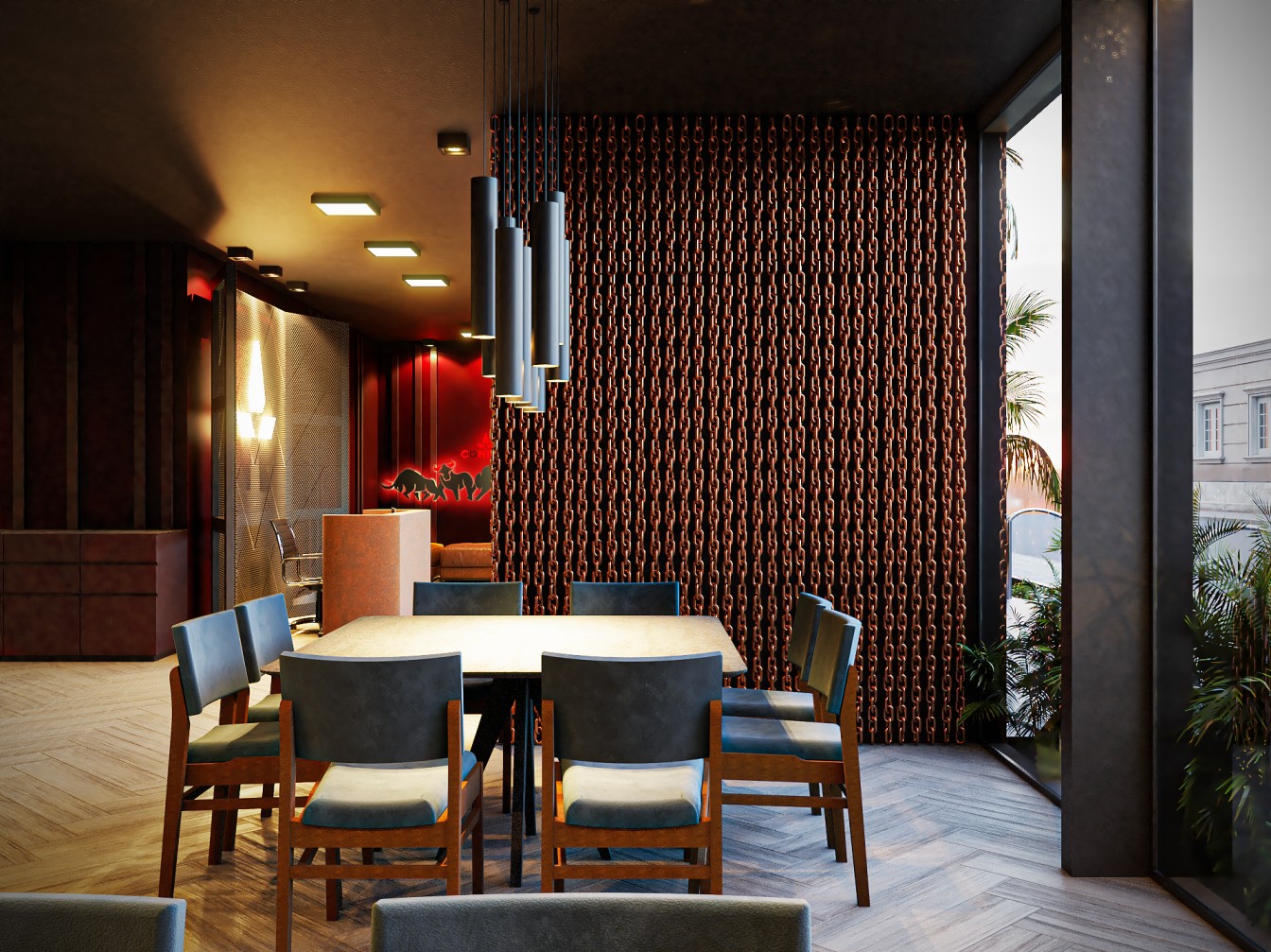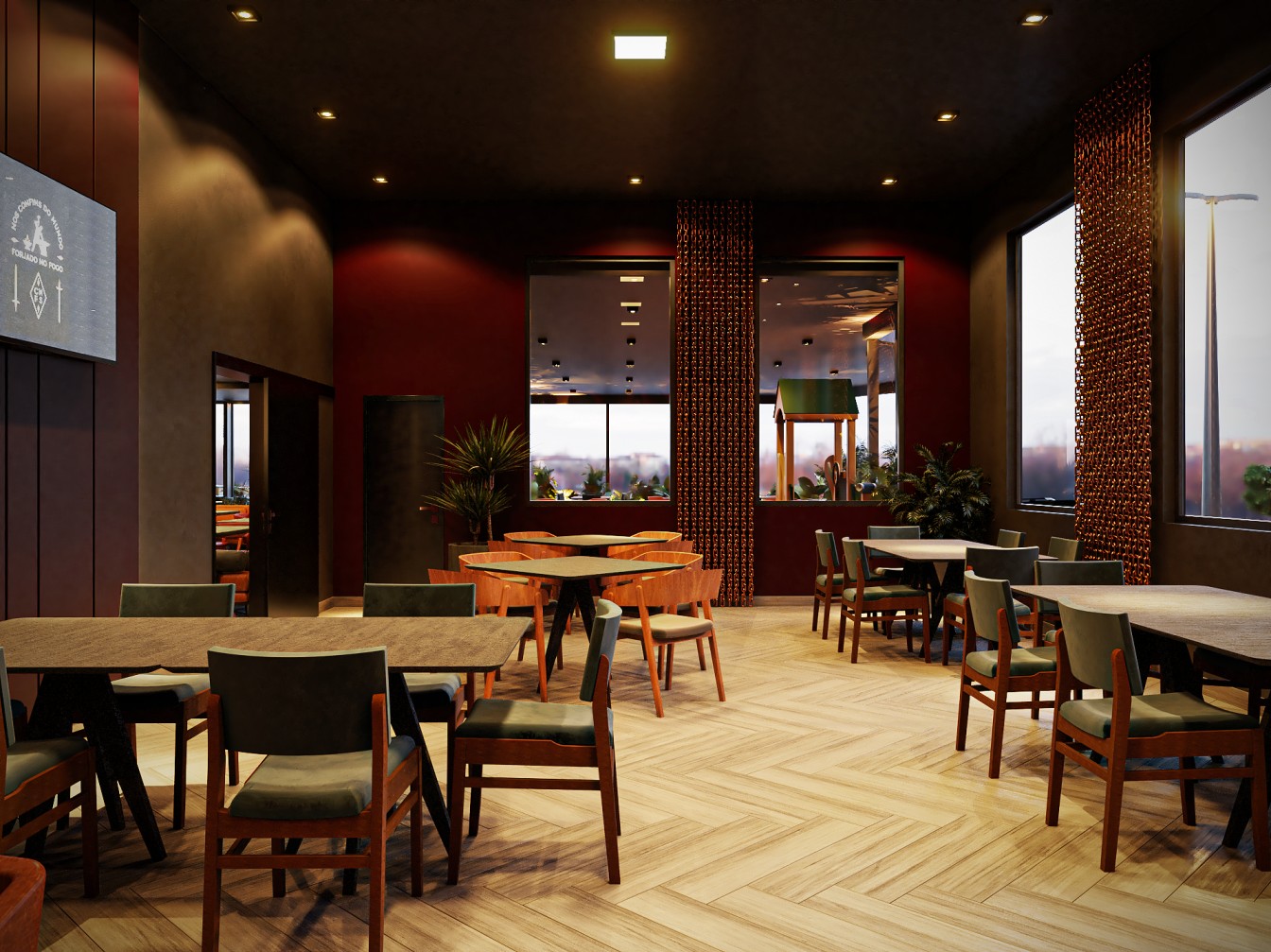 Neste restaurante a temática da carne é sublinhada pelas imponentes cabeças de touros nas paredes, adicionando uma presença robusta e evocando a tradição dos autênticos steakhouses. A iluminação suave realça a textura das mesas de madeira escura, criando um ambiente aconchegante e íntimo, onde os amantes de carne podem desfrutar não apenas de uma refeição saborosa, mas também de uma experiência visualmente impactante neste templo da culinária.