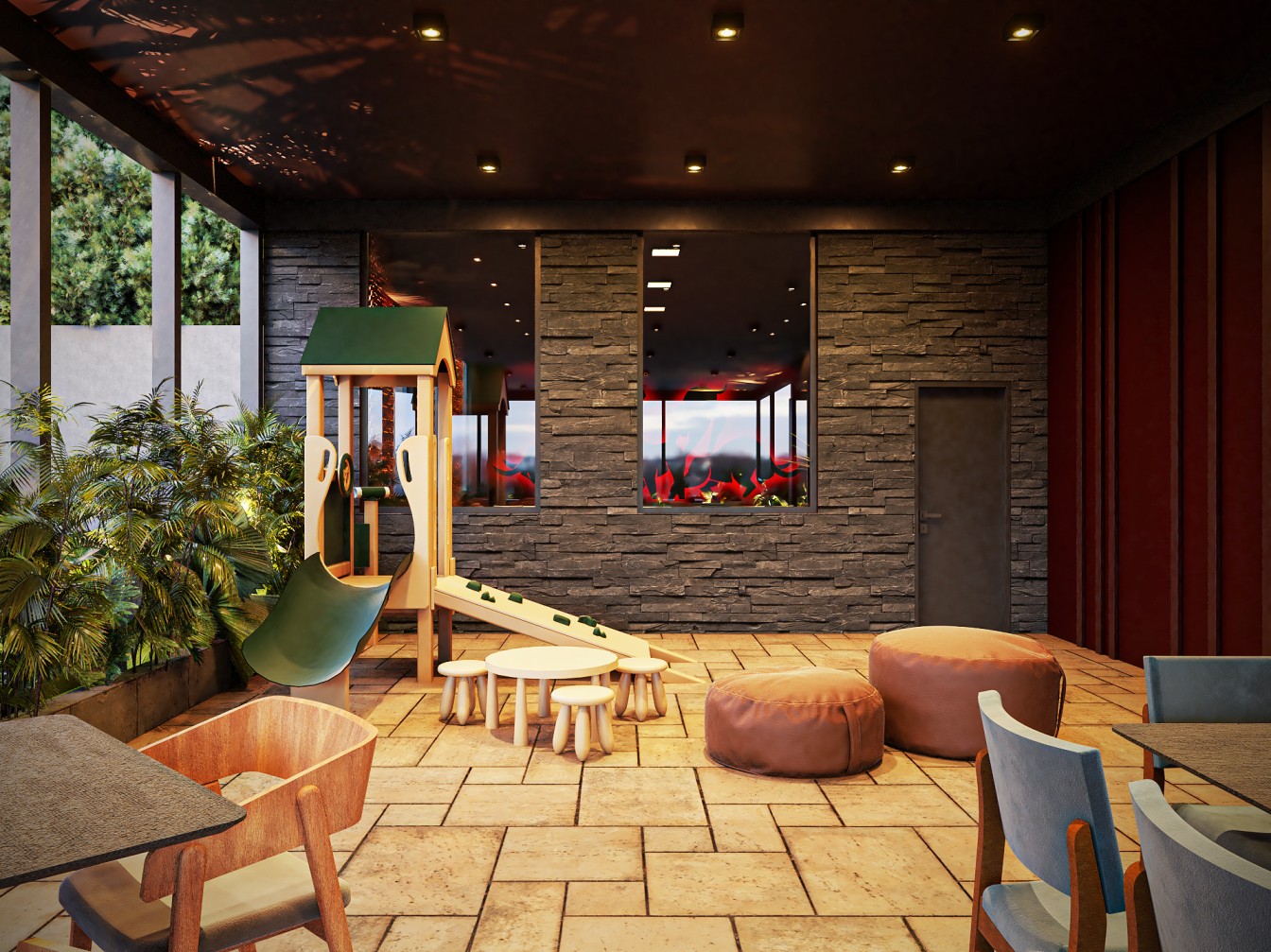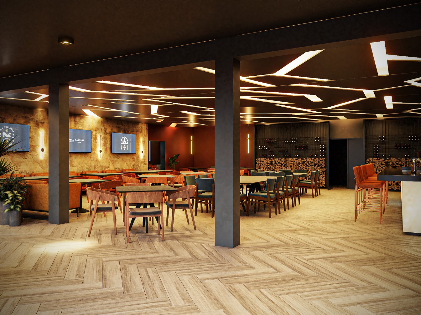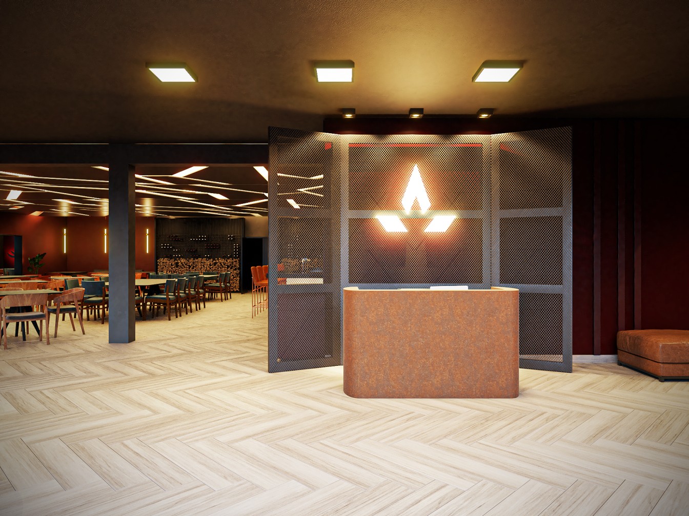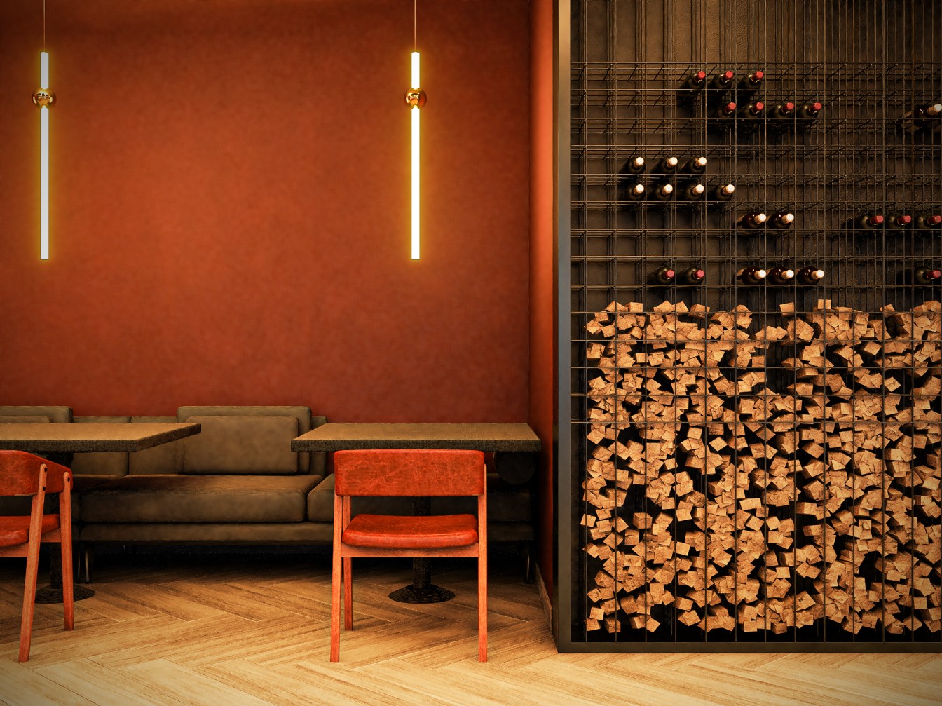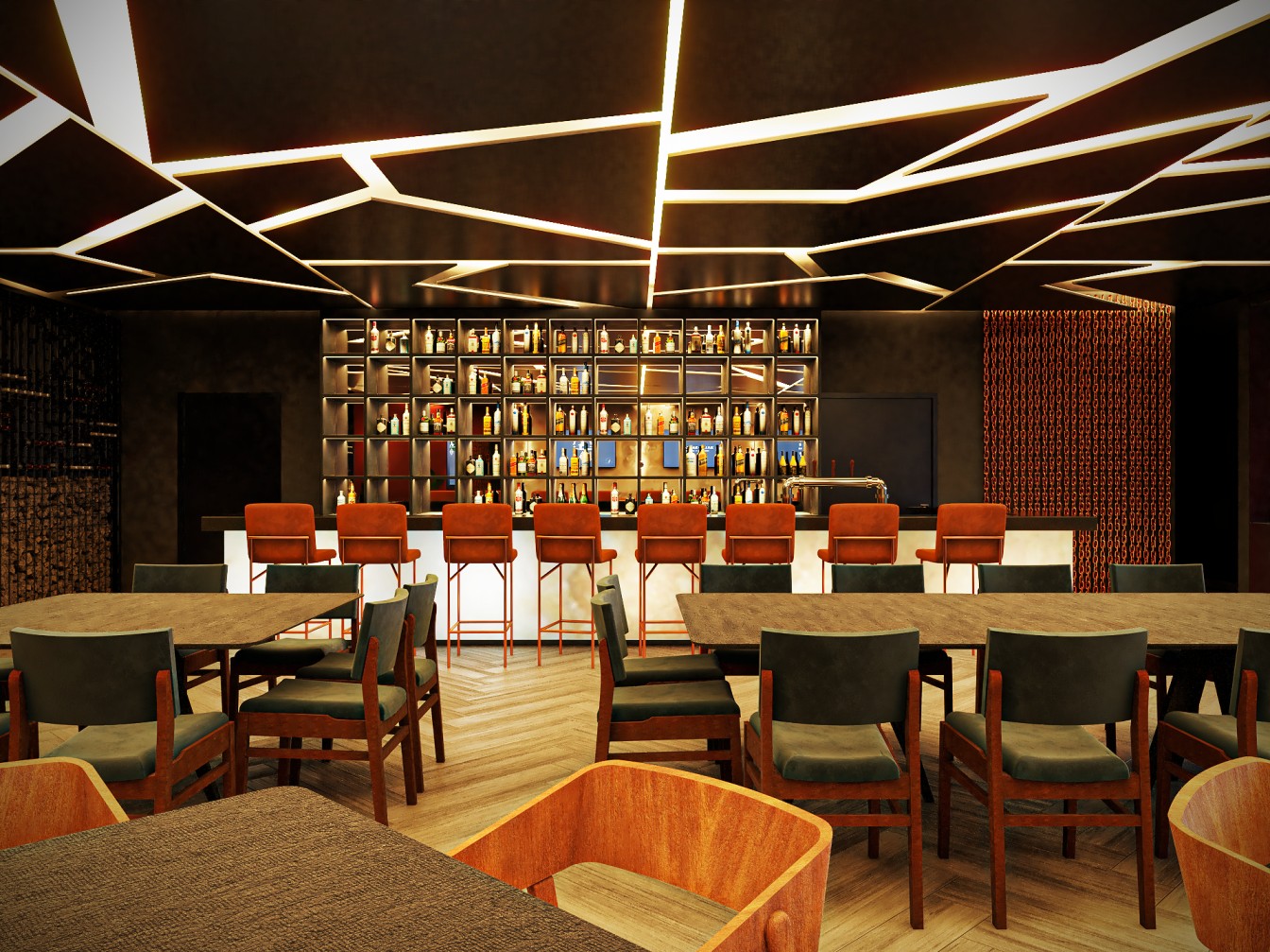 Neste restaurante a temática da carne é sublinhada pelas imponentes cabeças de touros nas paredes, adicionando uma presença robusta e evocando a tradição dos autênticos steakhouses. A iluminação suave realça a textura das mesas de madeira escura, criando um ambiente aconchegante e íntimo, onde os amantes de carne podem desfrutar não apenas de uma refeição saborosa, mas também de uma experiência visualmente impactante neste templo da culinária.