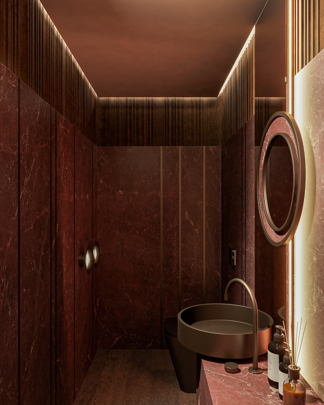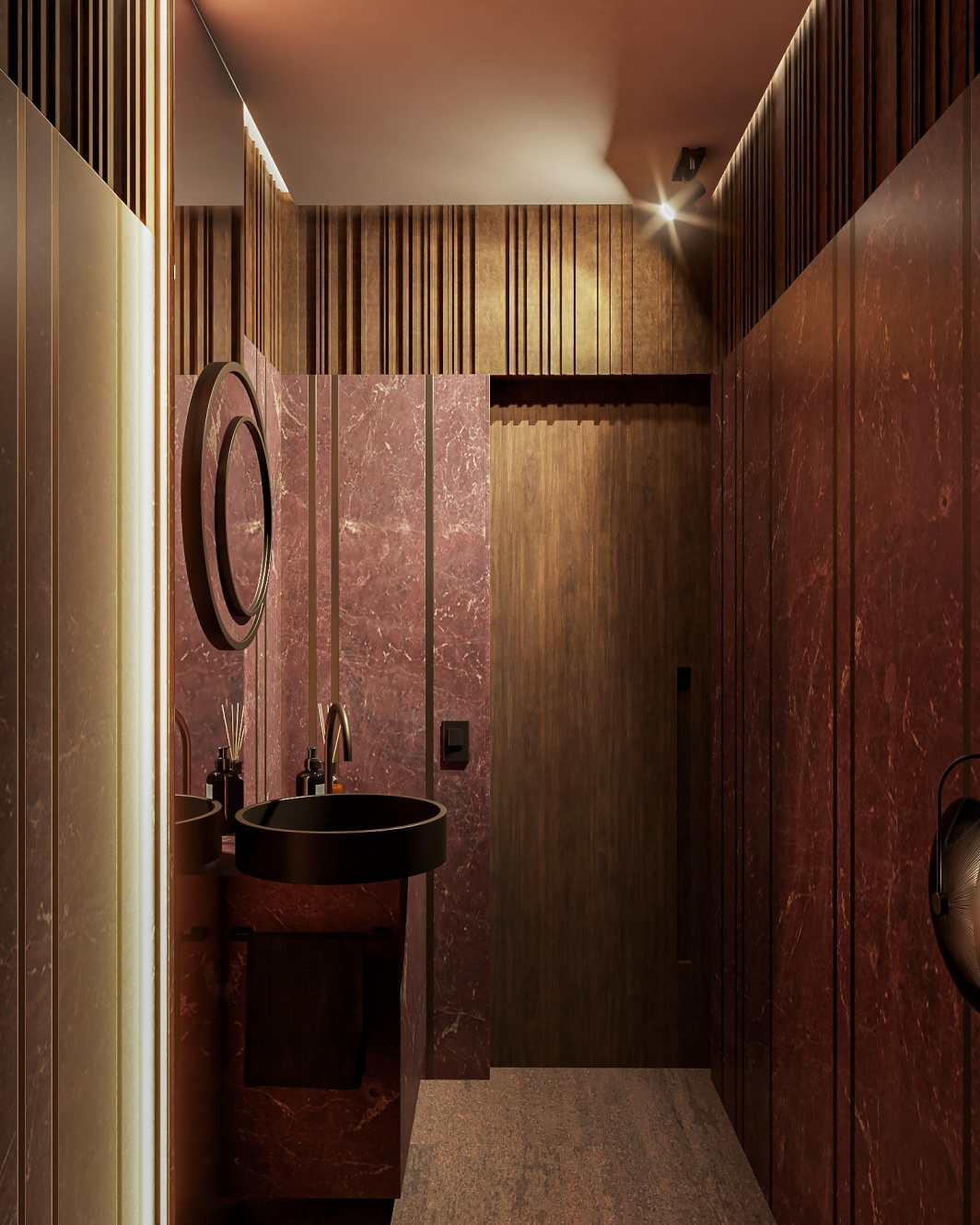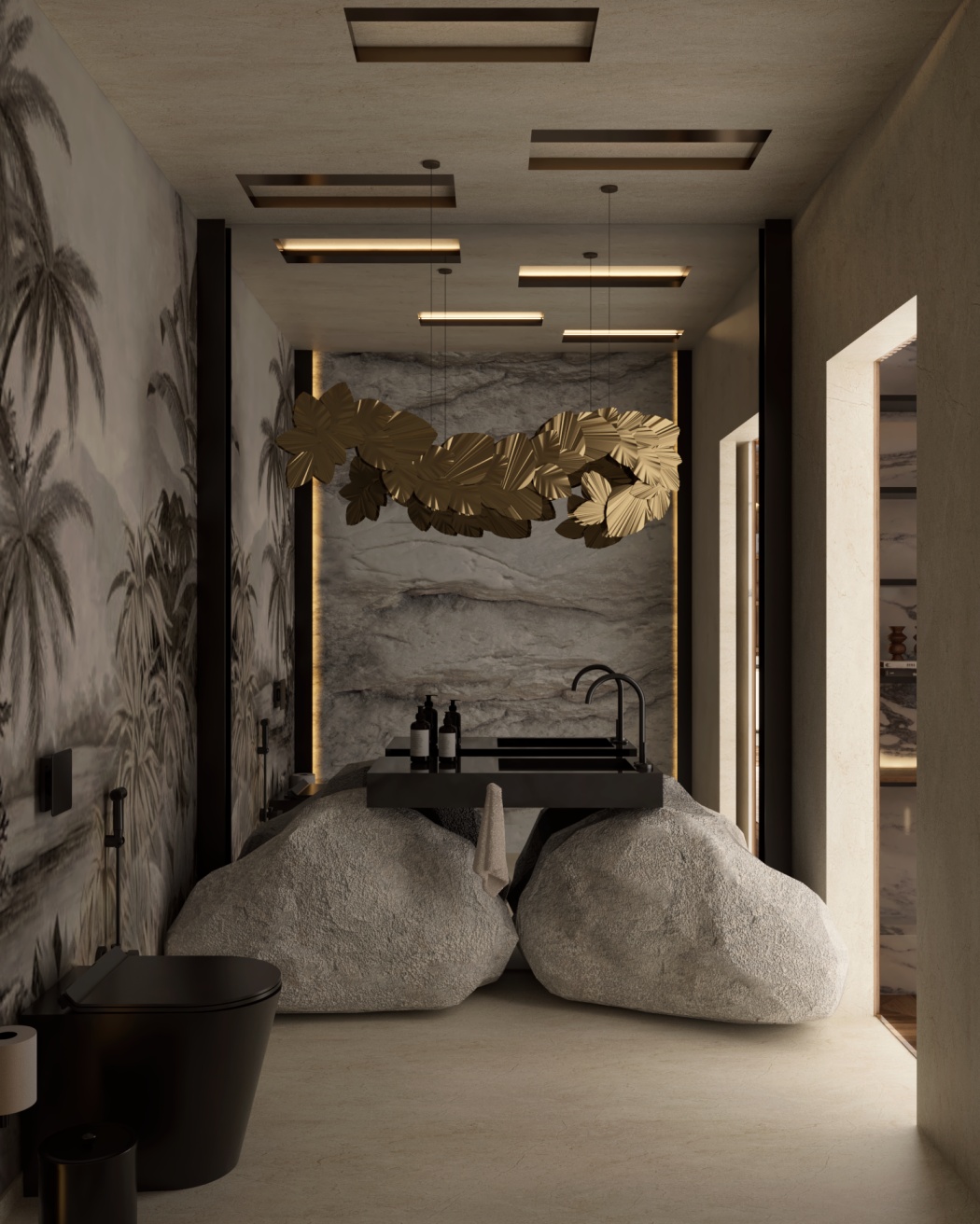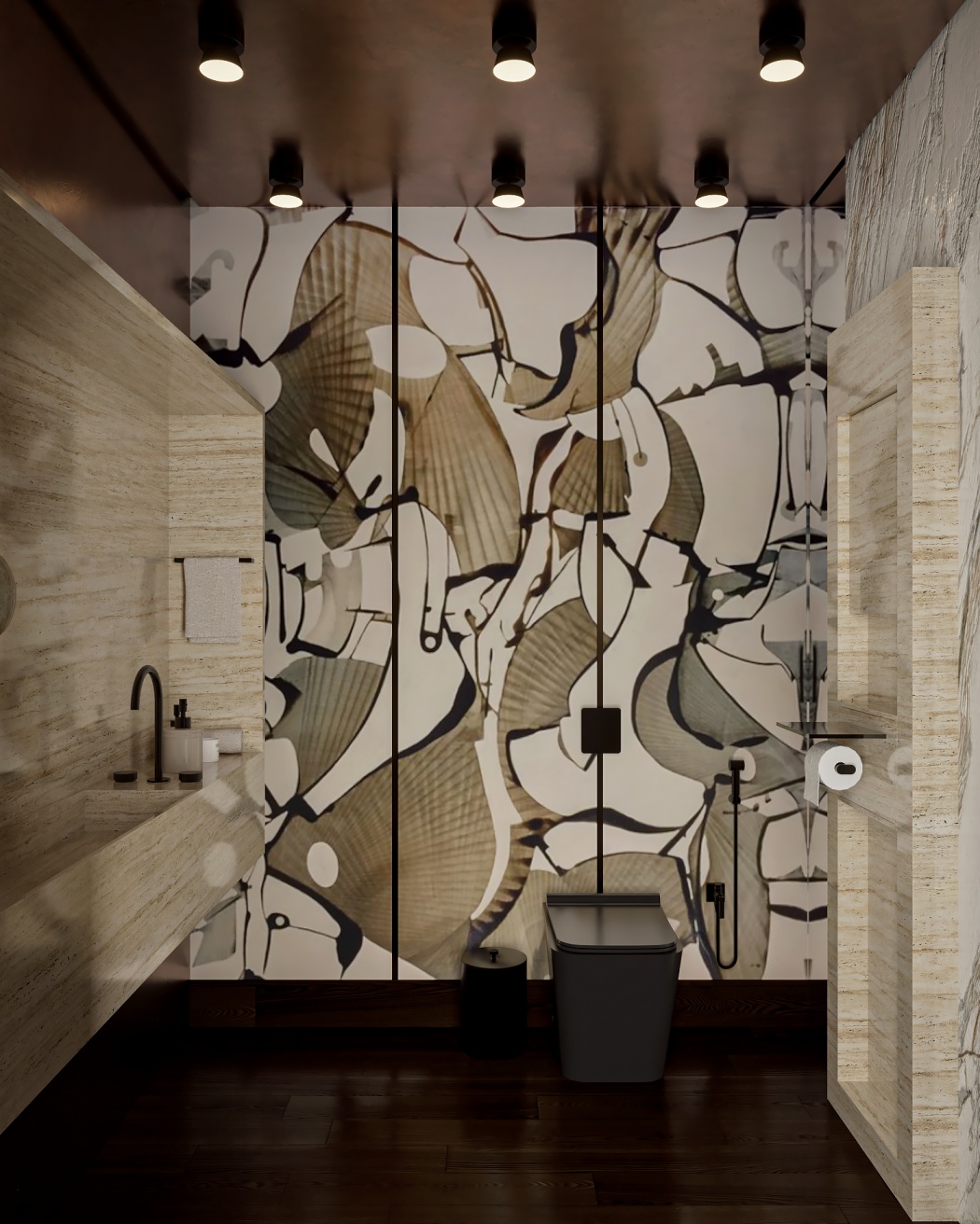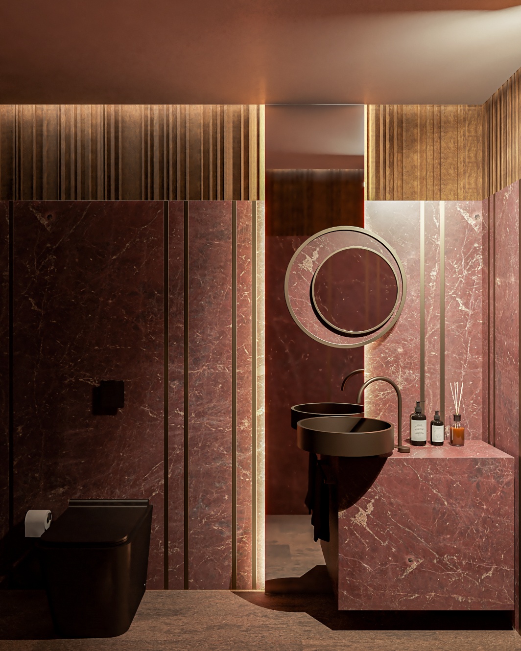 Esta elegante sala de reunião, onde o refinamento é a essência do ambiente. O bar em mármore brilha com sofisticação, proporcionando um ponto focal impressionante. Detalhes em tons marrons, presentes em móveis e elementos decorativos, acrescentam uma nota de aconchego e seriedade ao espaço. Poltronas de couro, dispostas estrategicamente, conferem um toque de luxo e conforto, criando um ambiente propício para discussões e decisões importantes.