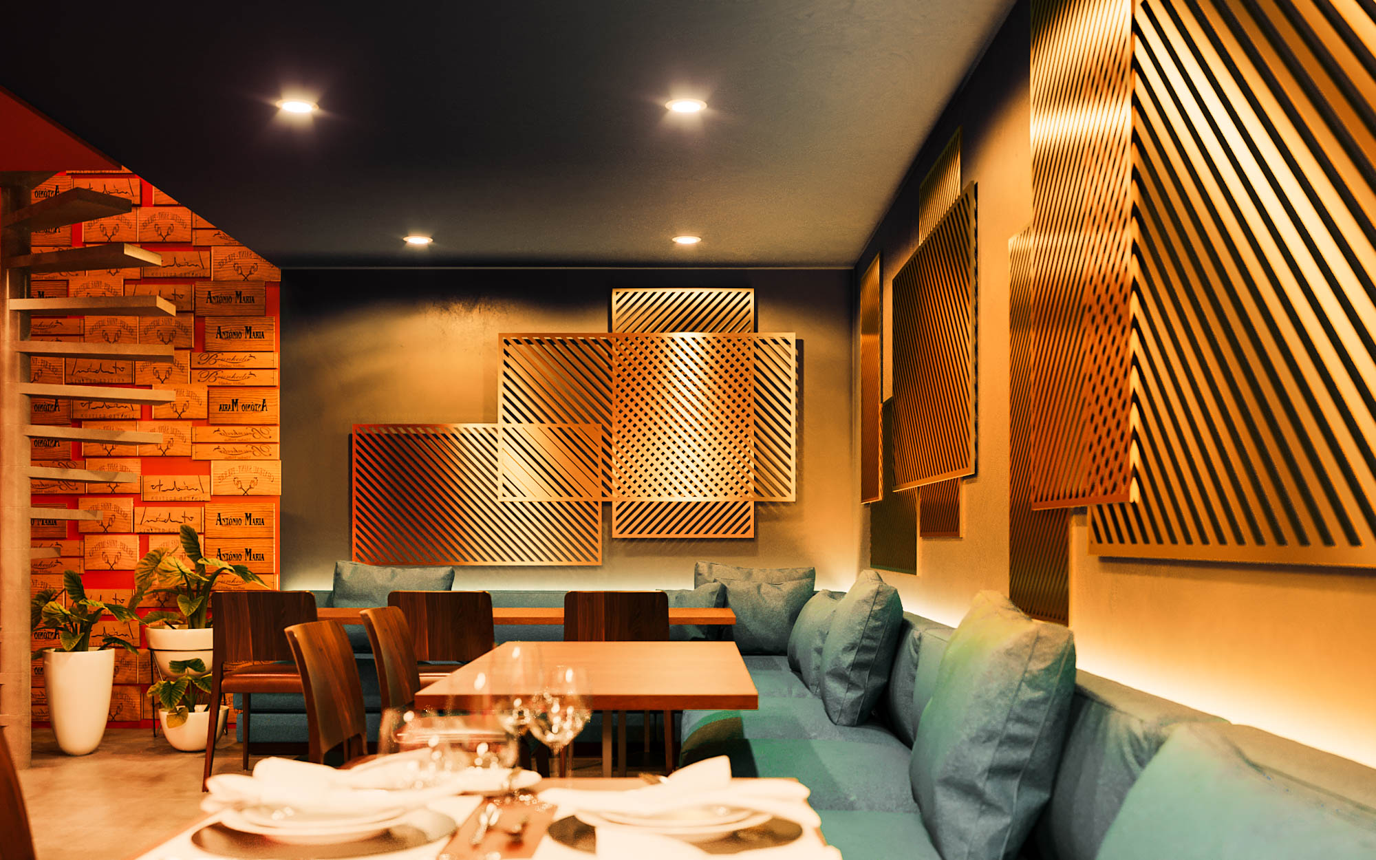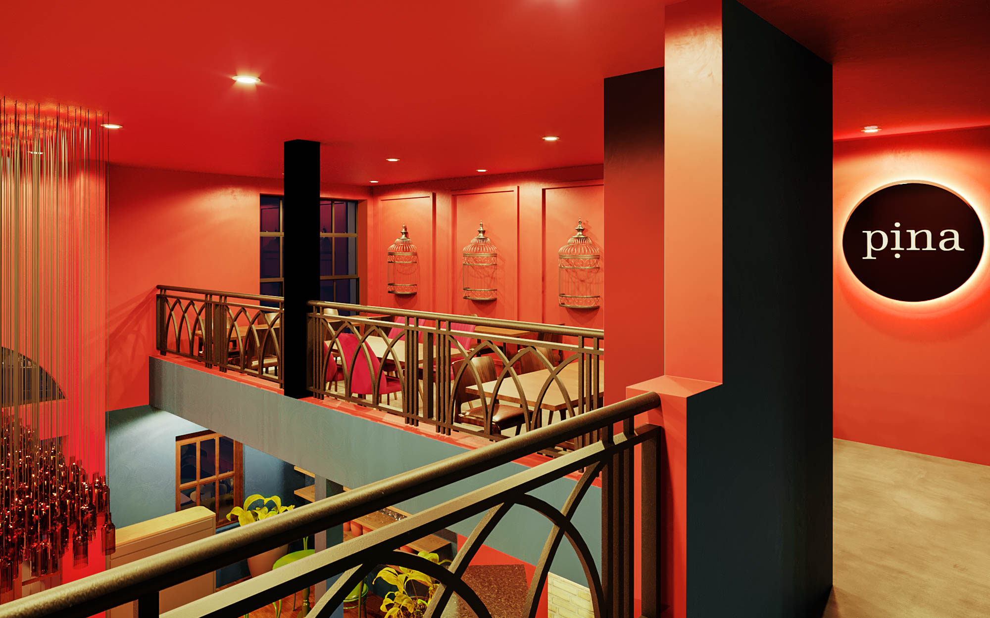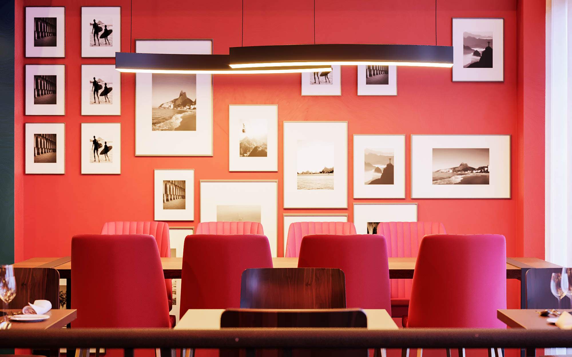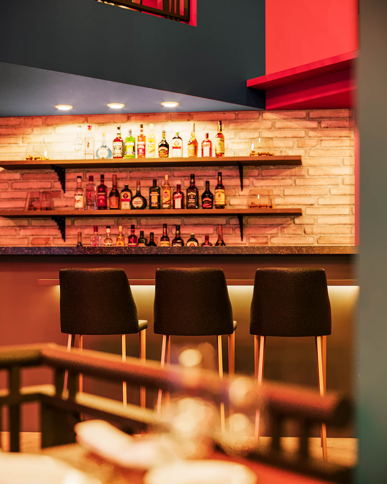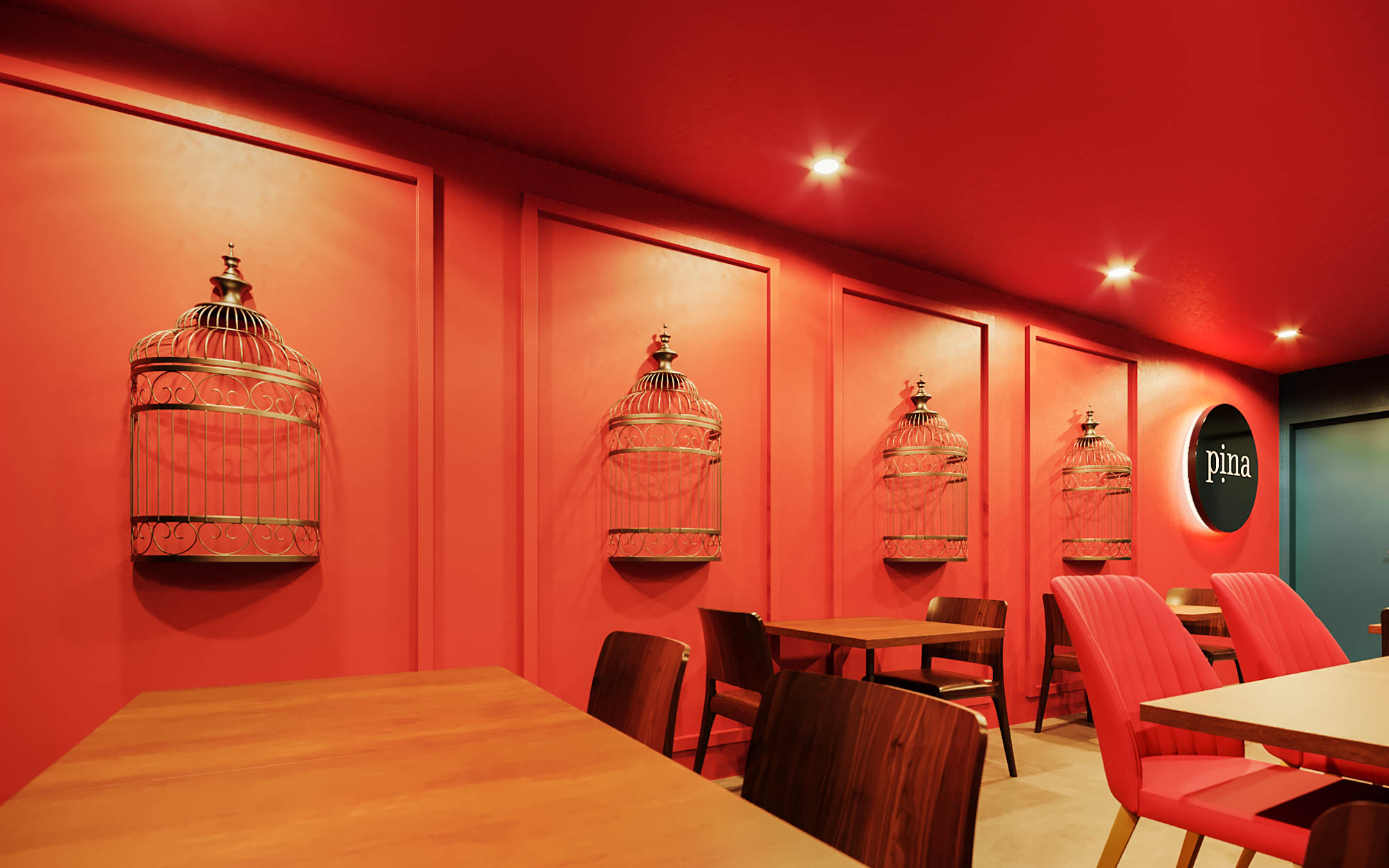 Este restaurante italiano fora do comum, onde o tom forte de vermelho domina o ambiente, conferindo-lhe uma atmosfera vibrante e apaixonante. Detalhes metálicos em preto pontuam o espaço, proporcionando um contraste sofisticado. Sofás em um tom envolvente de turquesa adicionam uma nota ousada e contemporânea ao ambiente, criando uma combinação intrigante de cores. Este local transcende as expectativas do típico restaurante italiano, oferecendo uma experiência visualmente cativante.