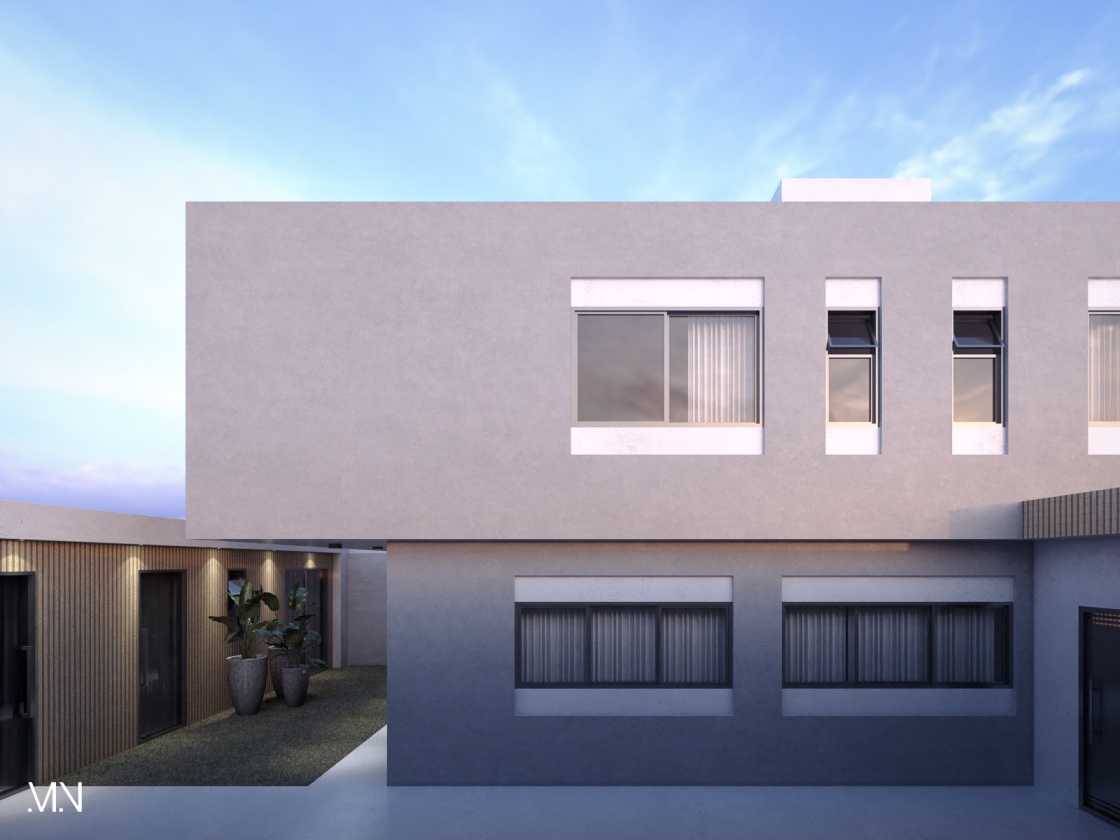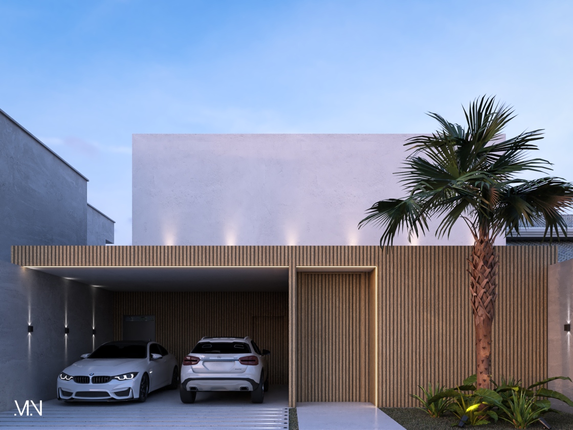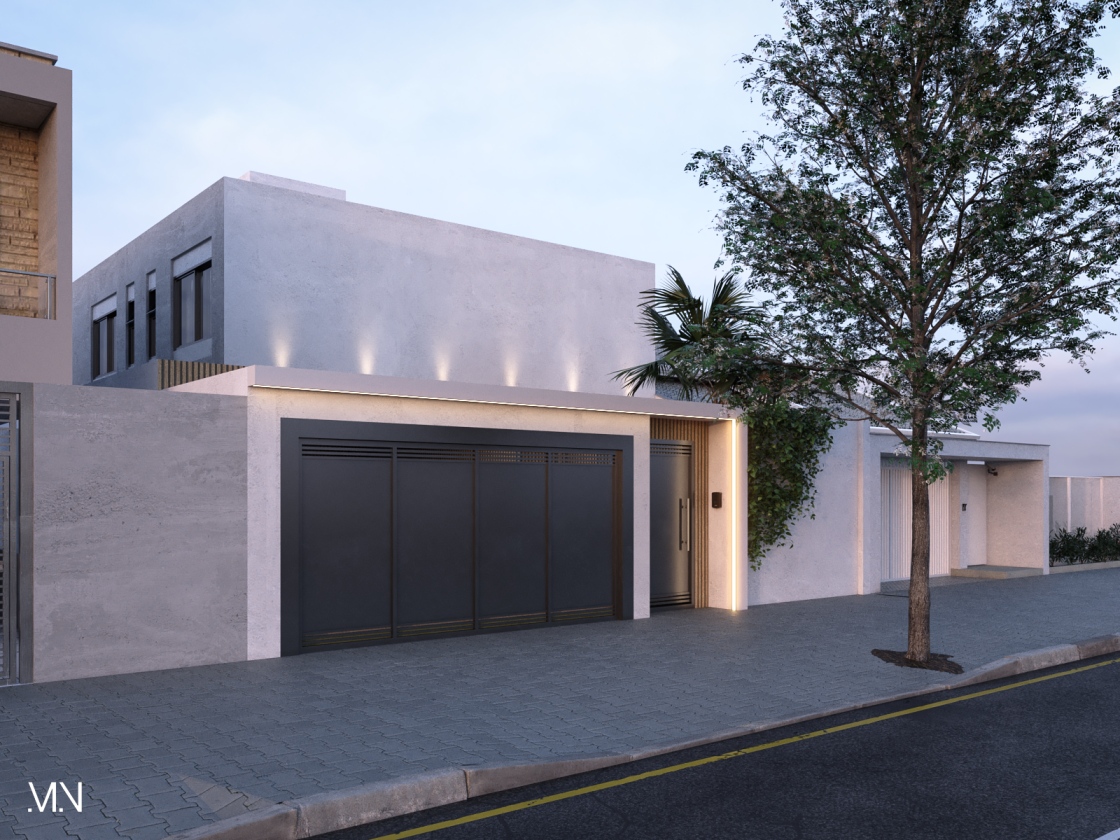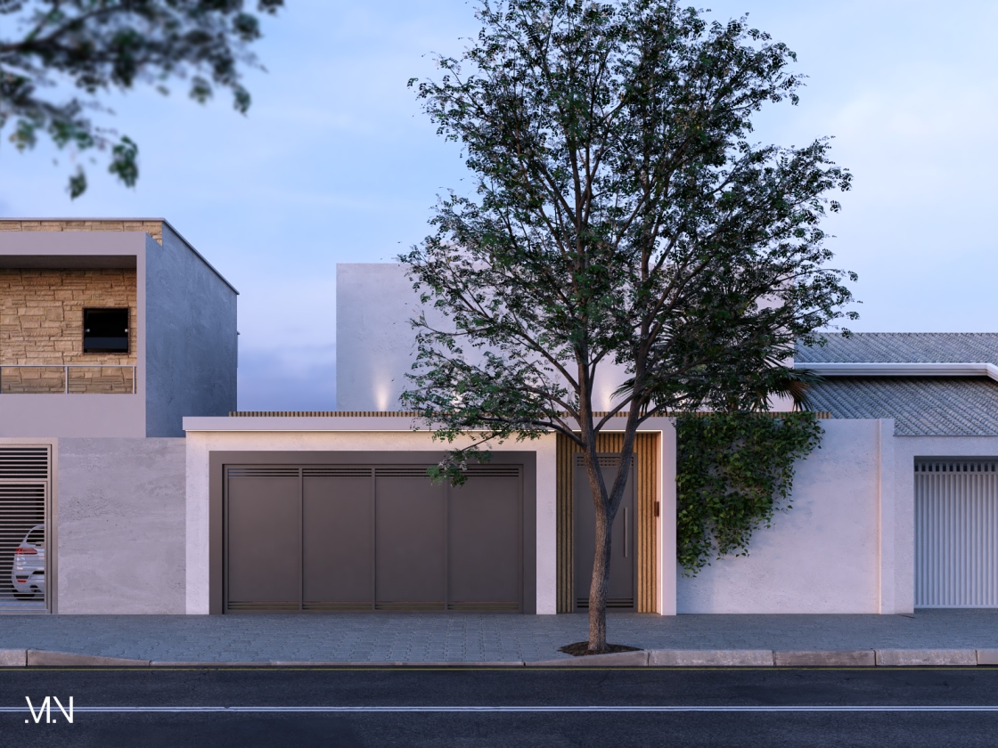 Esta deslumbrante residência de dois pavimentos é um testemunho da elegância contemporânea e design arquitetônico refinado. A fachada, predominantemente em tons de cinza, transmite uma estética moderna e sóbria, enquanto detalhes em ripado amadeirado adicionam um toque de calor e textura ao conjunto. As linhas limpas e a simetria