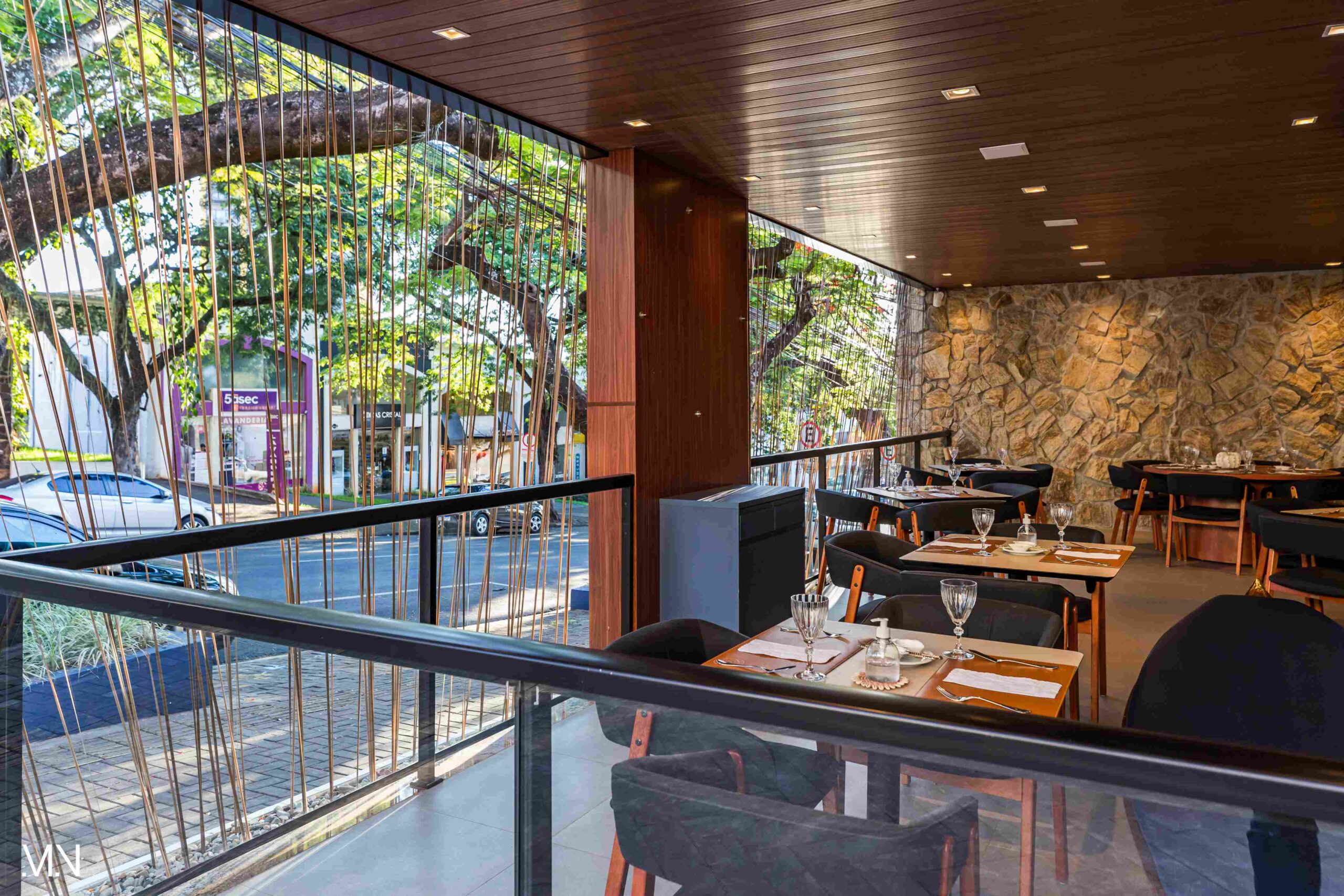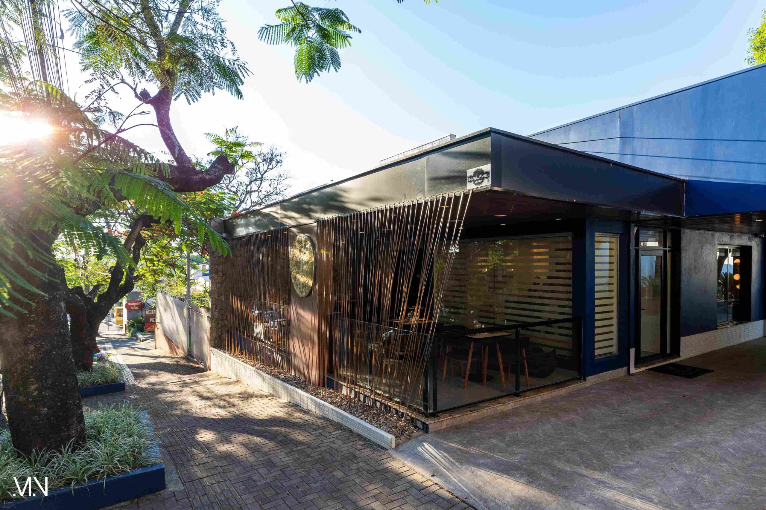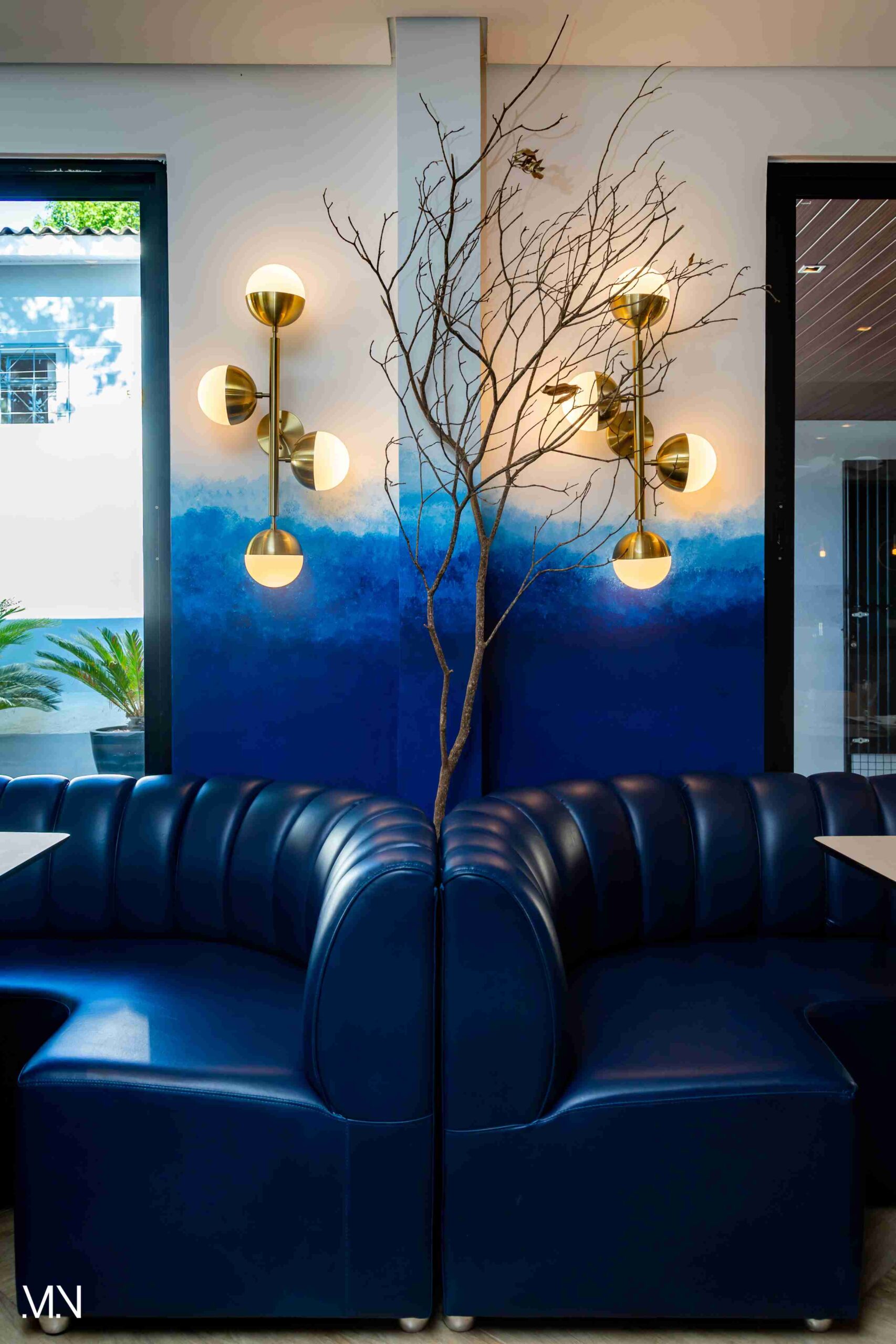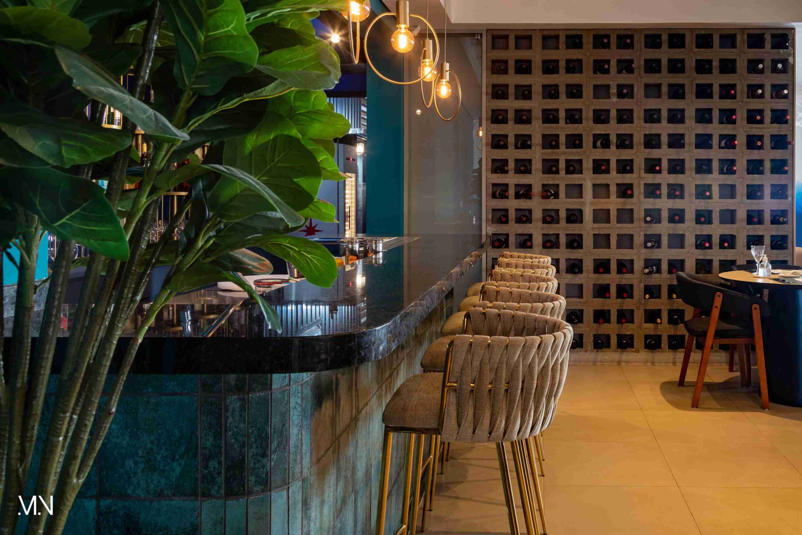 Este restaurante teve como principalmente conceito o fundo do mar, imerso em tons serenos de azul e acentuado por peixes decorativos suspensos no teto. Tons de madeira permeiam o espaço, criando uma atmosfera aconchegante e autêntica. Uma experiência gastronômica única se entrelaça com o design acolhedor e contemporâneo, transportando os clientes para um cenário marítimo encantador.