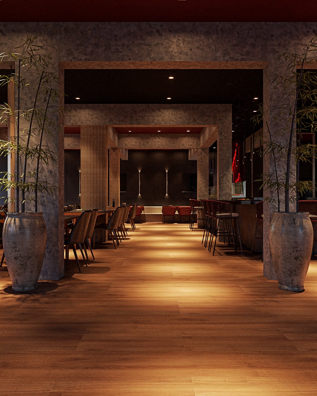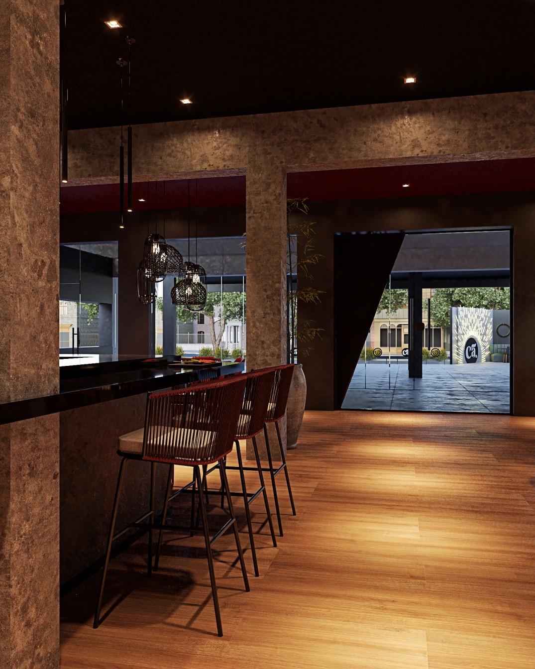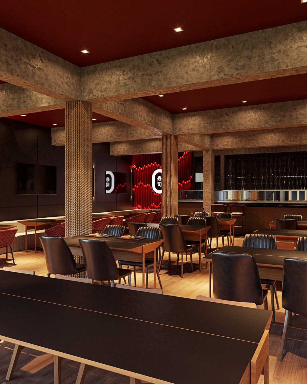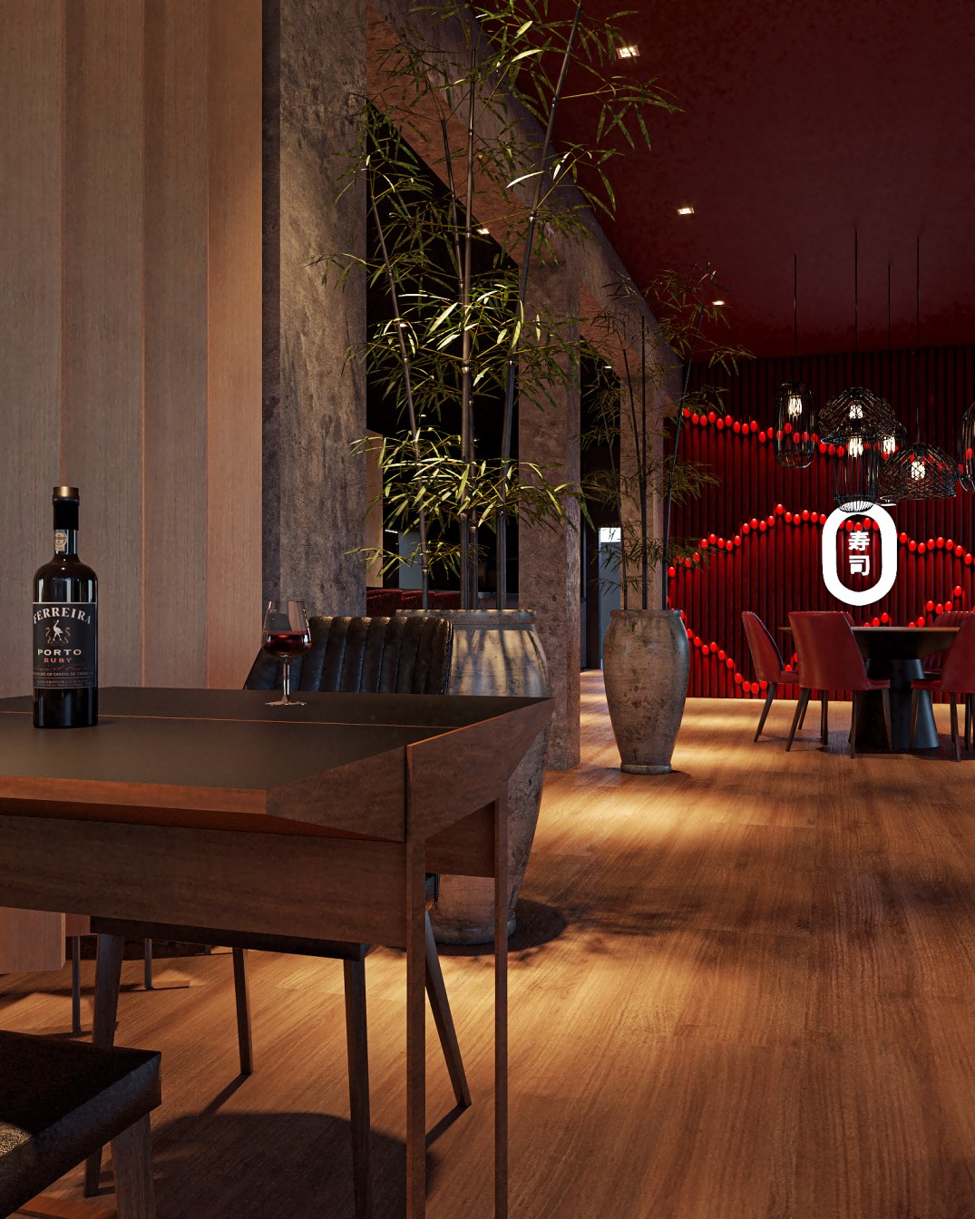 Este estabelecimento que equilibra a tradição japonesa com uma estética contemporânea, convida a uma experiência gastronômica sofisticada no Hokkai Sushi, em meio a uma atmosfera calorosa e convidativa. A fachada imponente, adornada com elementos dourados que remetem a marca, convida os clientes a uma experiência culinária excepcional. No interior, a iluminação suave destaca a paleta de cores rica, enquanto detalhes em dourado, como luminárias e ornamentos, proporcionam um brilho sutil.