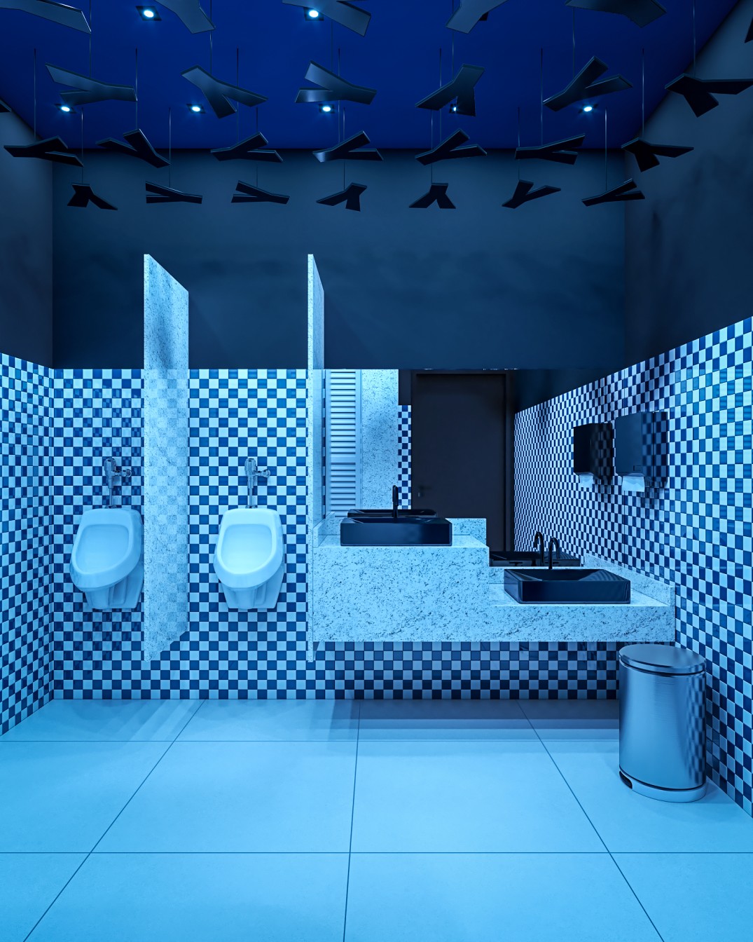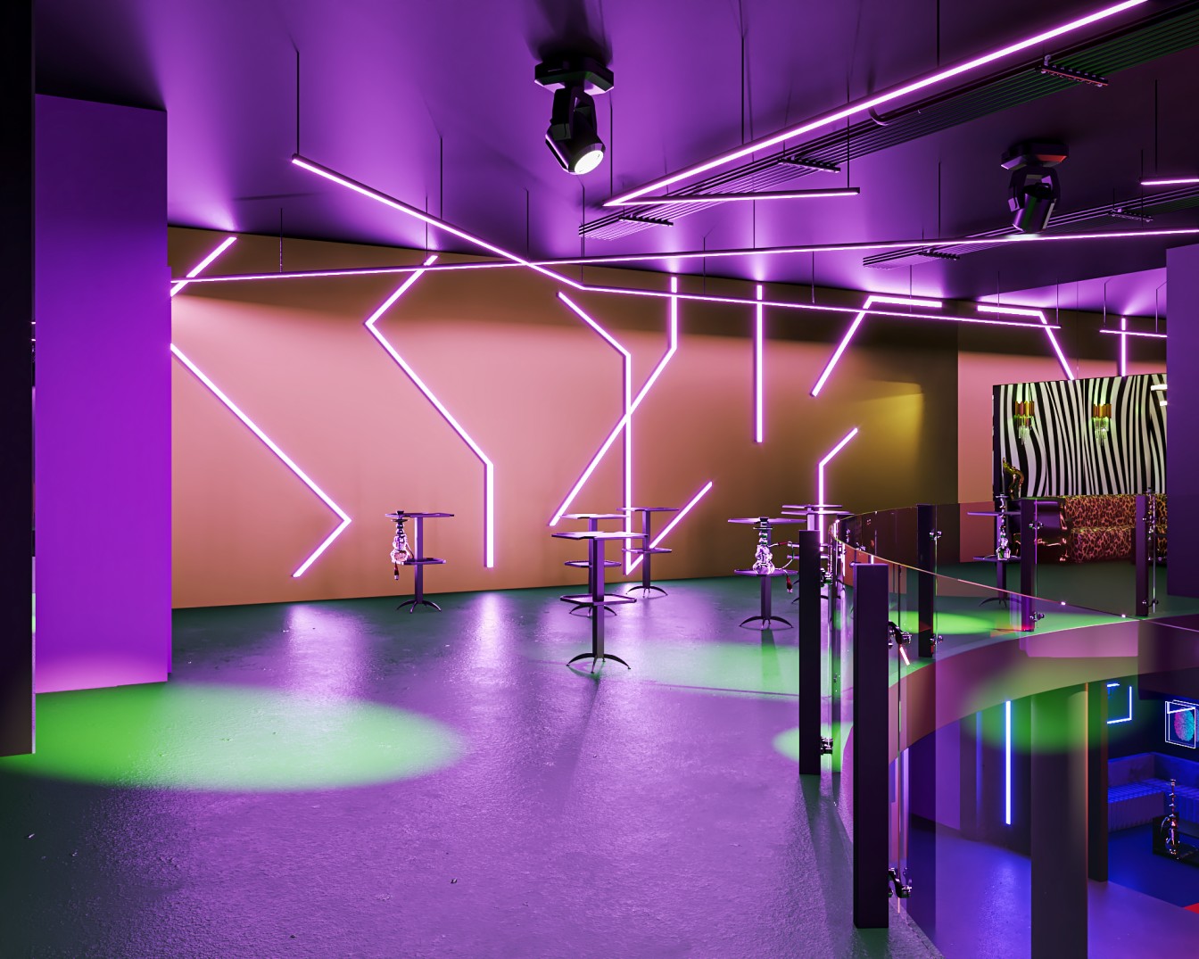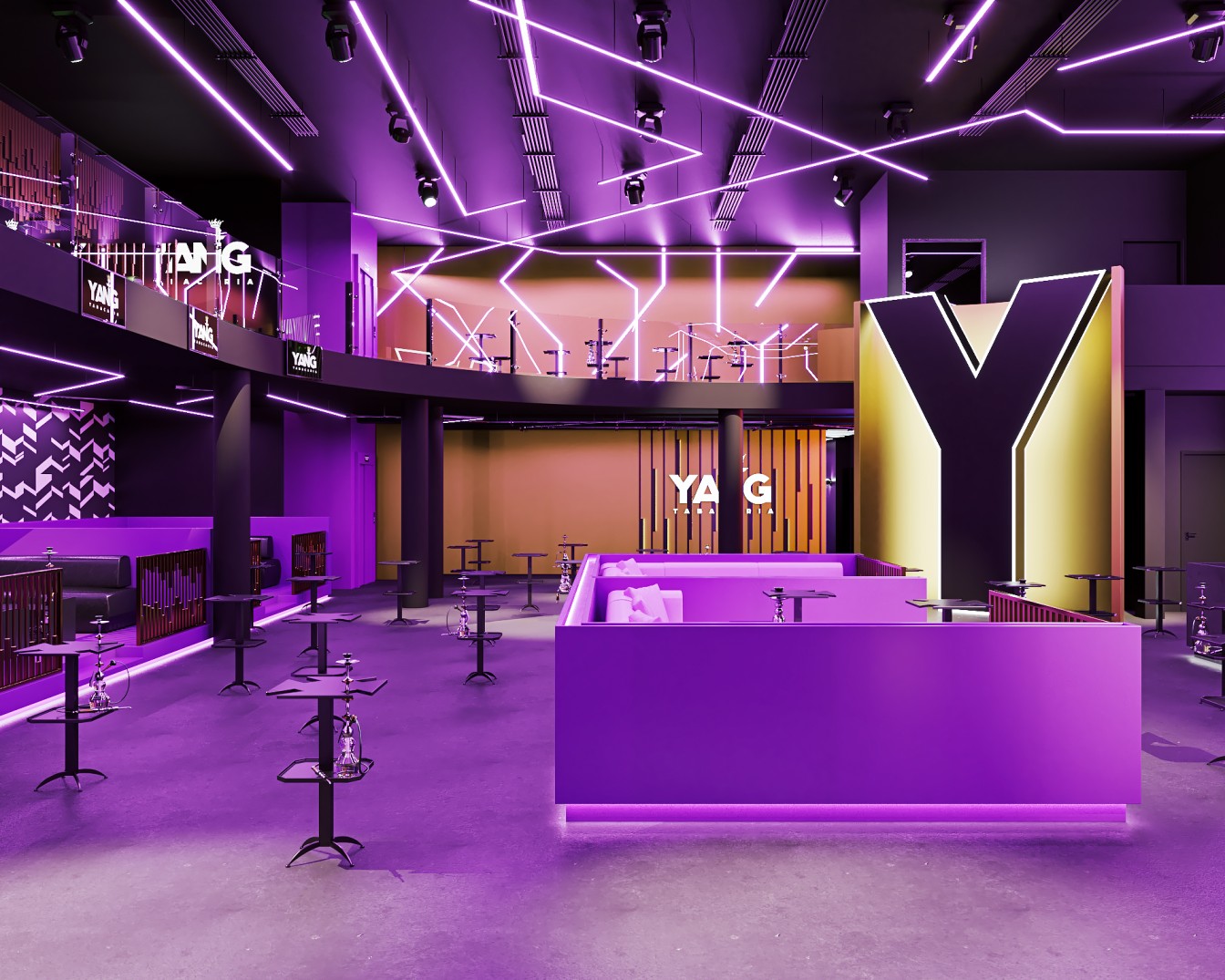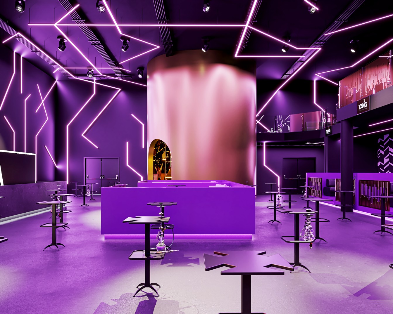 Esta sedutora balada lounge de narguilé cativa desde a fachada até o interior, onde a mistura ousada de preto e dourado cria uma estética luxuosa e contemporânea. A fachada, adornada com detalhes dourados reluzentes, convida os visitantes a uma experiência noturna única. Ao adentrar, o espaço se desdobra em dois pavimentos, cada um imerso em uma atmosfera de elegância. O preto domina, desde o mobiliário até as paredes, enquanto detalhes em dourado, como luminárias e elementos decorativos, adicionam um toque de opulência.